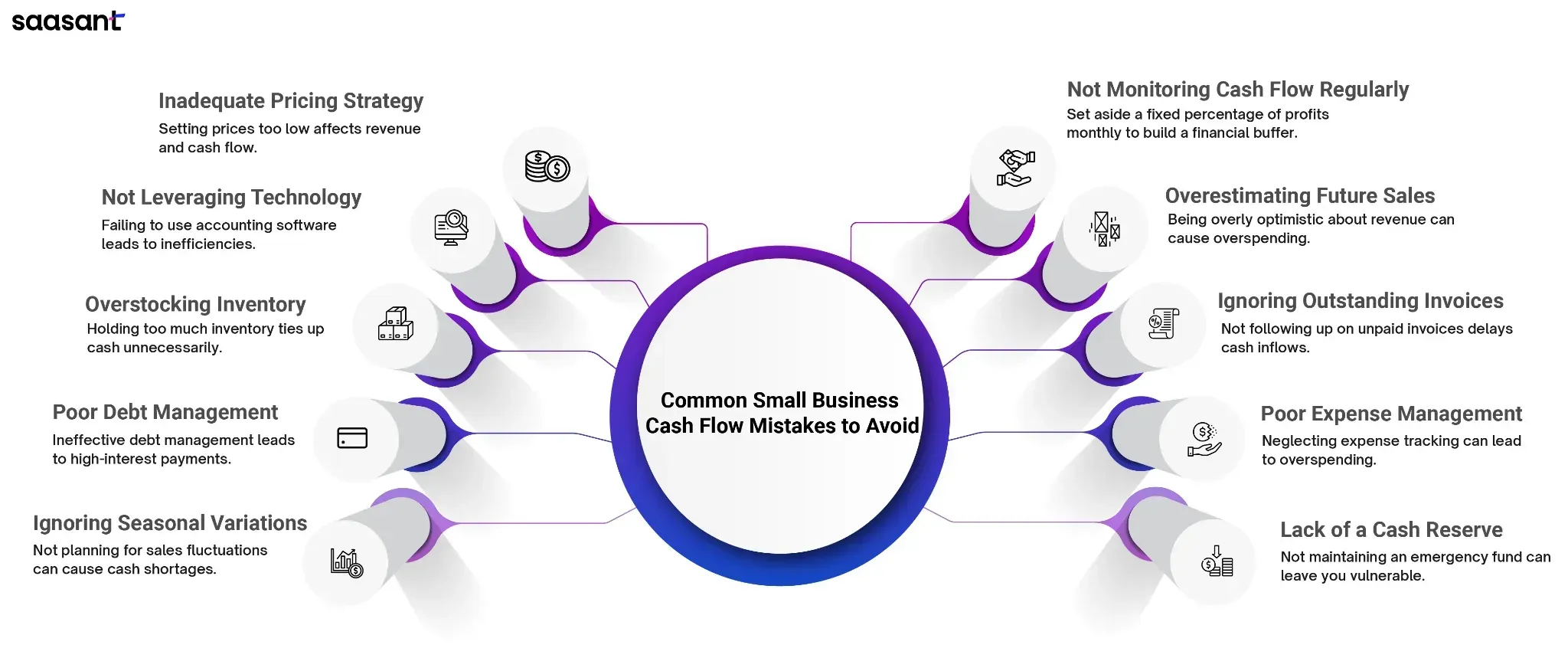 Overestimating revenue – assuming that sales will constantly rise can result in overspending.